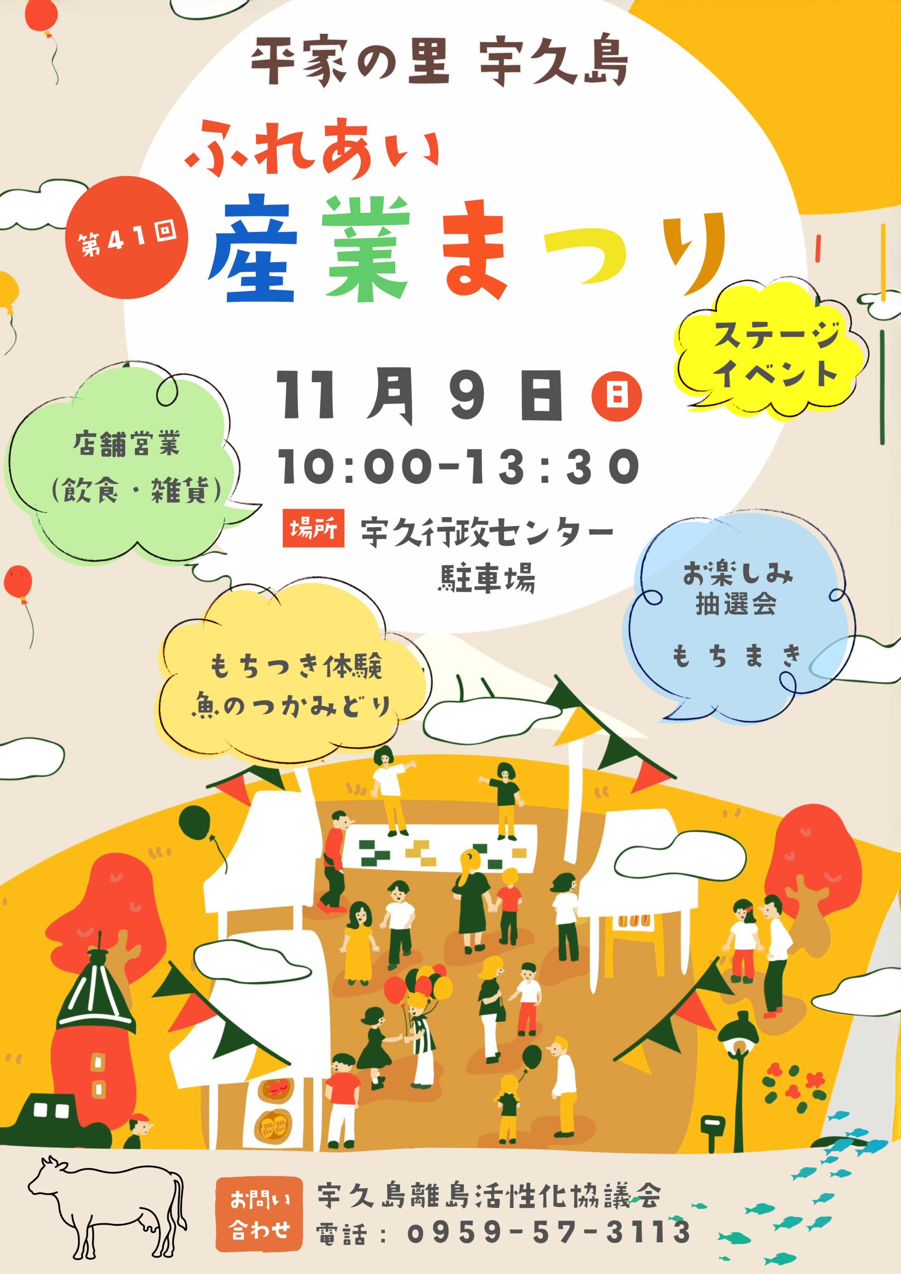 宇久観光バスは、地域の皆さまとのふれあいを大切に、今年も「ふれあい産業まつり」にステージ・展示部門で参加いたします。