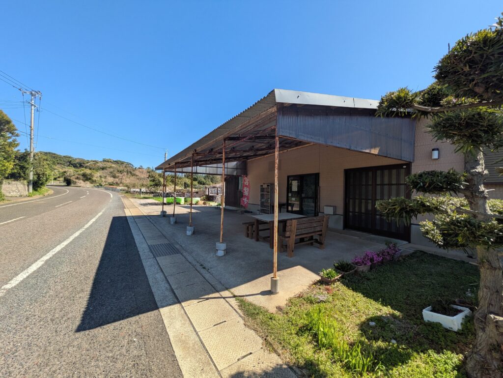 飯良停留所下車してすぐ、『営業中』の赤いのぼり。