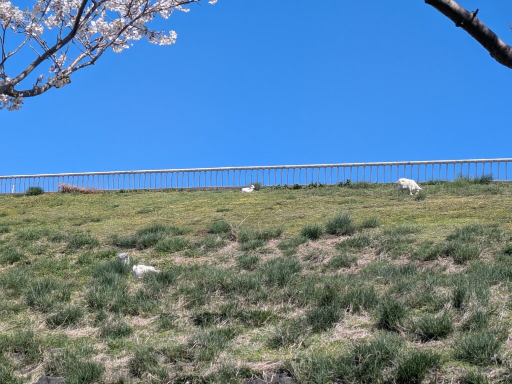 ヤギさん、今日も草を食べてくれてありがとう。おかげできれいな若葉色の大地が見れたよ。