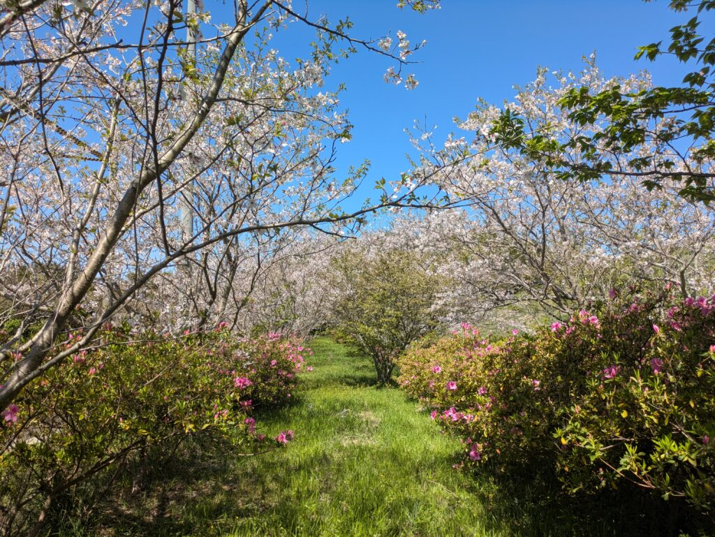 道路から一歩踏み入れると、満開の桜のトンネル。